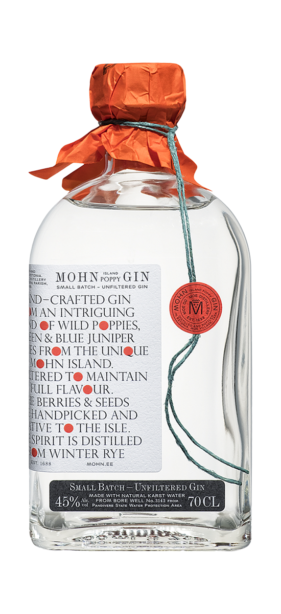 – Handgefertigter Gin, eine faszinierende Mischung aus wildem Mohn, grünen und blauen Wacholderbeeren von der einzigartigen Insel Mohn (Muhu)